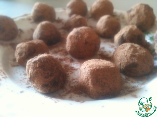Какао-порошок высыпаем на тарелку. Берем чайной ложкой шоколадную массу, формируем из нее шарик и обмакиваем в какао. Все просто) Ставим в холодильник, чтобы они хорошенько застыли.
