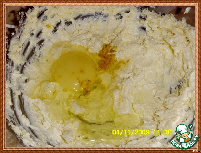 Продолжая взбивать на маленькой скорости, добавить муку (2/3 ст.), просеянную с солью и разрыхлителем.