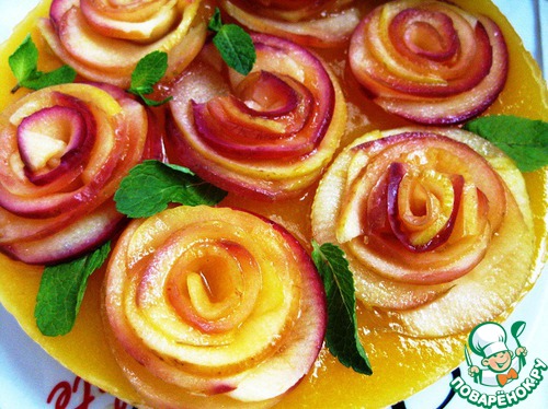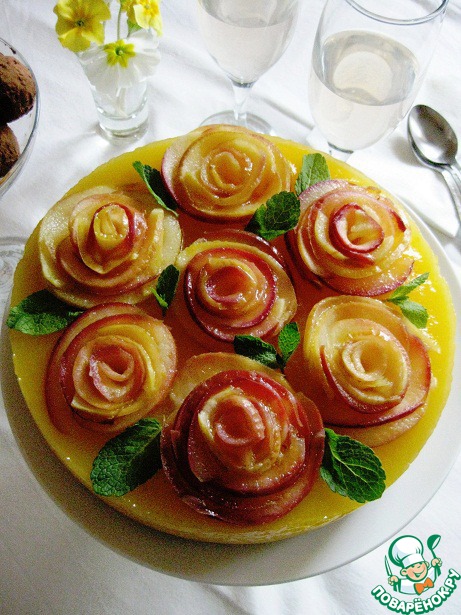 Достаем застывший Торт и выкладываем на него наши розы, немного вдавив их. Украшаем мятой по желанию. И можно приглашать всех родных и любимых к столу.