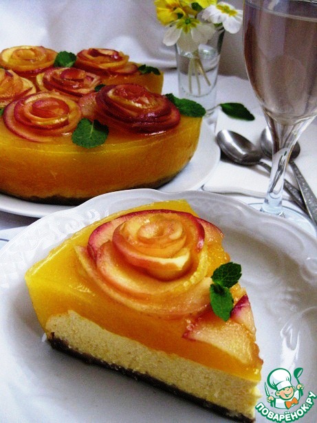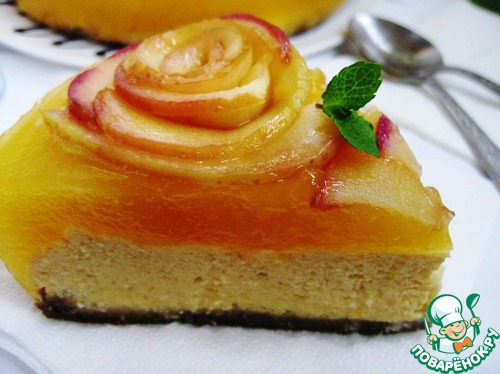 Сверху основы вылить творожно-персиково-б елковую массу. Форму прикрыть фольгой и поставить в пароварку на 40 минут. остудить и убрать в холодильник на несколько часов.