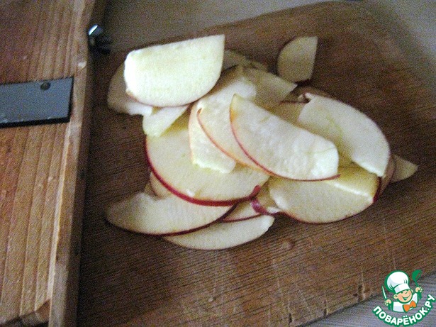 Удаляем сердцевину и режем тонкими ломтиками. Я это сделала шинковкой.