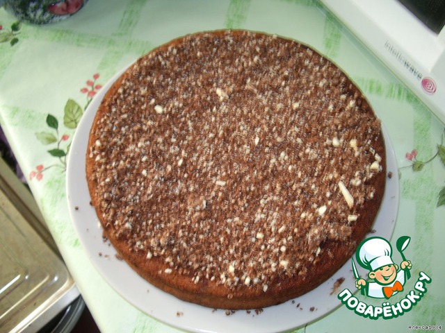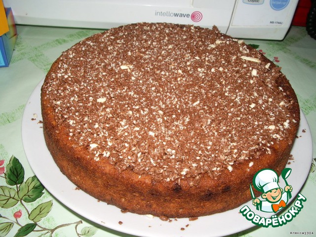 И обсыпаем шоколадкой ещё горячий пирог.