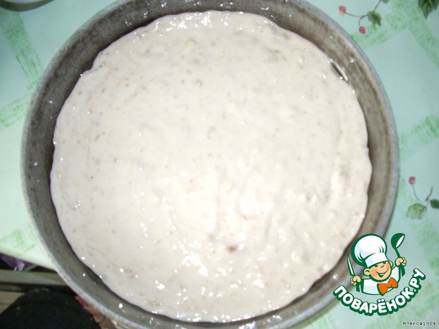 Выкладываем наше тесто в посуду, где будет выпекаться пирог, предварительно смазав подсолнечным маслом.