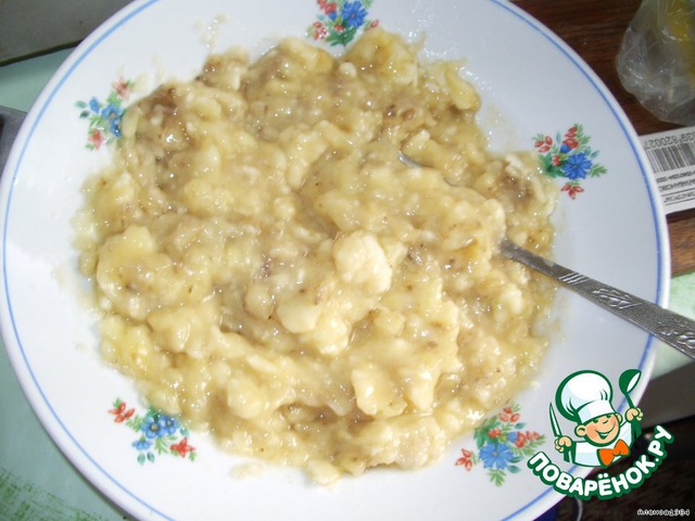 Измельчаем бананы, но не до пюре, а так, чтобы остались маленькие кусочки.