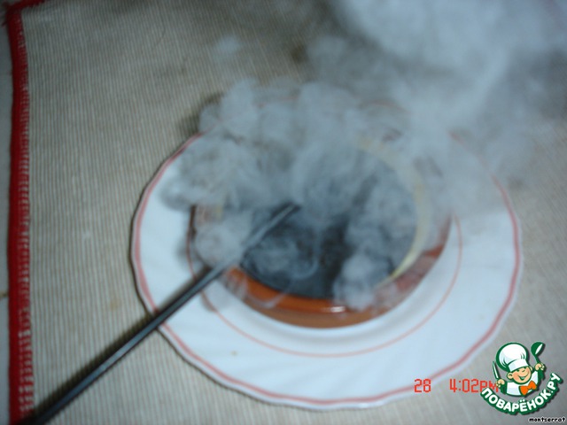 В таком виде немедленно подаем к столу. При отсутствии пластины можно сахар прижечь маленькой паяльной лампой (из личного опыта).