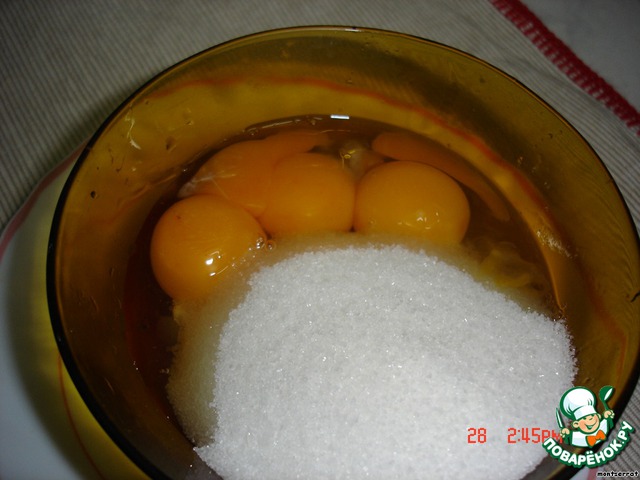 Желтки отделяем от белков (белки используем для других целей) и растираем с сахаром.