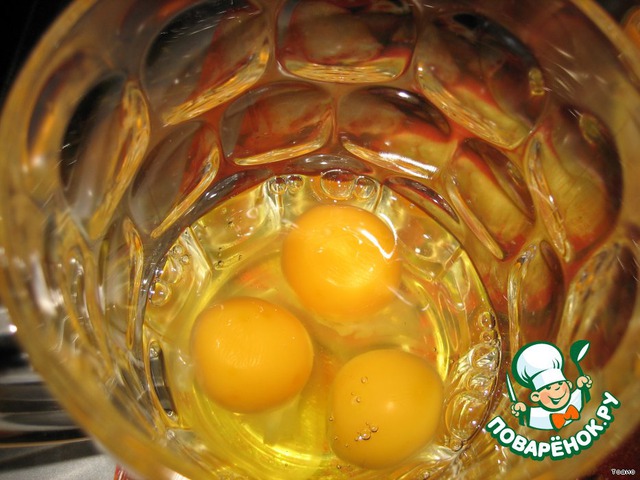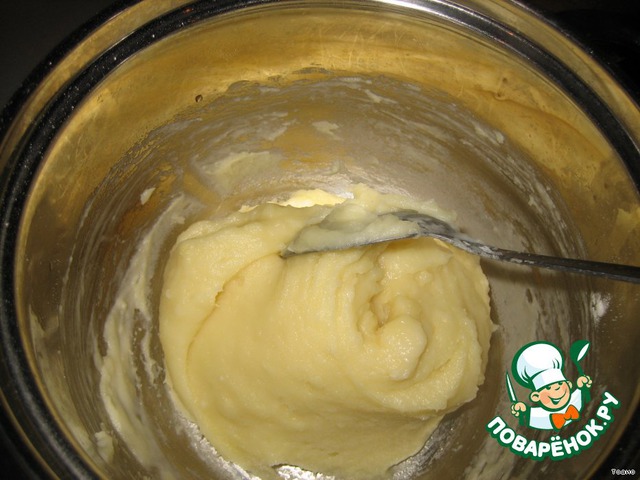 Яйца разбить в кружку, взбить. Очень медленно, постепенно ввести яйца в тесто. Тесто должно получиться гладким и блестящим.