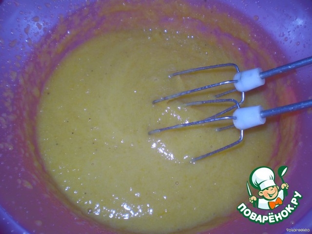 Нашу охлаждённую, слегка застывающую массу взбиваем миксером на большой скорости до суфлешного состояния.
