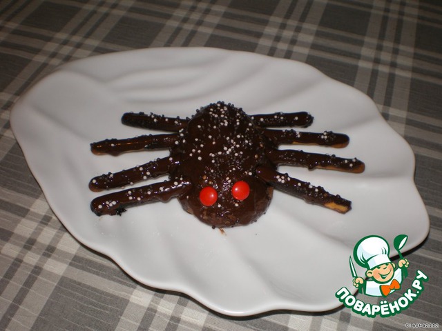 Шарики выкладываем на застеленный бумагой для выпечки противень. Расстояние между будущими паучками должно быть значительным.