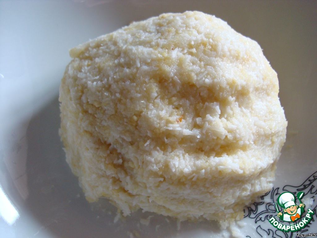 Сначала приготовим начинку, она должна простоять минимум часа 4 в холодильнике. В молоко добавляем сахар, крахмал и ванилин. Необходимо загустить нашу смесь на маленьком огне, постоянно помешивая (можно на водяной бане). Снимаем с огня, добавляем очень мелко измельченные орехи (спасибо блендеру) и кокосовую стружку. Их количество пишу примерное, получиться должна густая масса, чтобы в дальнейшем из нее мы смогли слепить шарики.