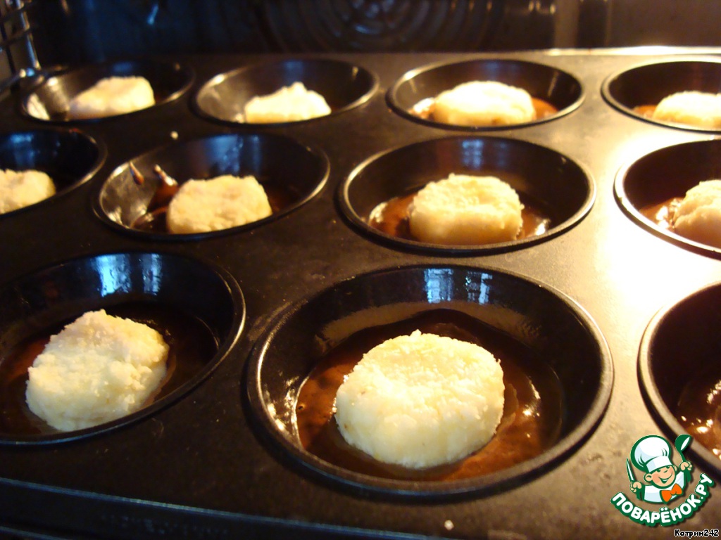 Смазать формочки сл.маслом, вылить в каждую по чуть-чуть тесто.