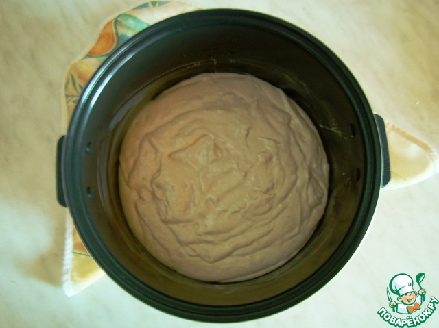 Выкладываем тесто в смазанную сливочным маслом чашу мультиварки и включаем режим ВЫПЕЧКА на 80 минут.