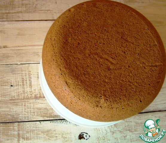 Остывший бисквит разрезаем на 4 части.