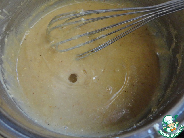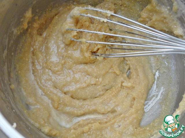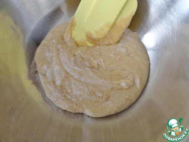 В тесто добавляем оставшийся белок и сахарную пудру. Перемешиваем.