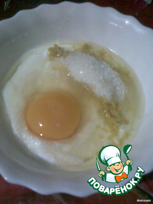 приготовить заливку.Смешать сметану,сахар,тертую цедру лимона и яйцо.