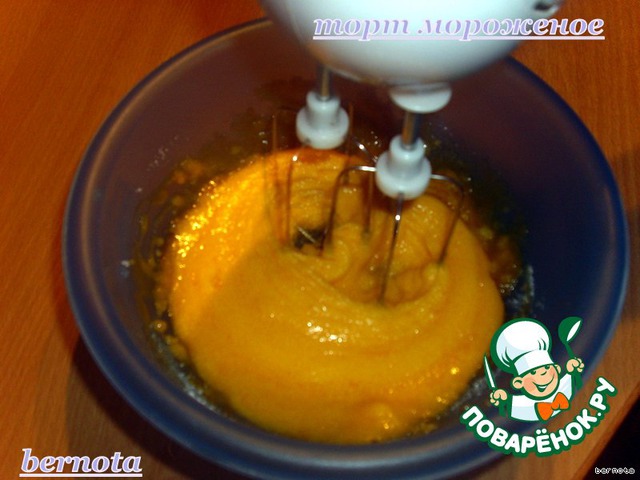 ставим в холодную воду и продолжаем взбивать до густоты.