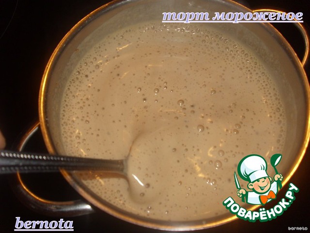 молочно-яичную массу ставим на плиту подогреваем (не кипятим) и неприрывно взбиваем.Для точности кладём на верх ложку она должна остаться наверху.