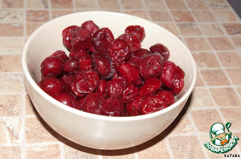 Вишню можно брать и спелую, тогда из нее нужно будет вытащить все косточки. А у меня в холодильнике жила уже без косточек, замороженная. Вишню нужно промыть и оставить, чтобы немного разморозилась.