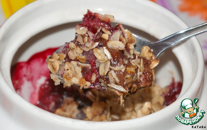 Вишневый крамбль с шоколадом в горшочке