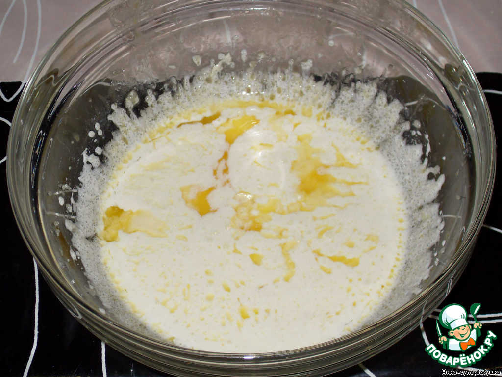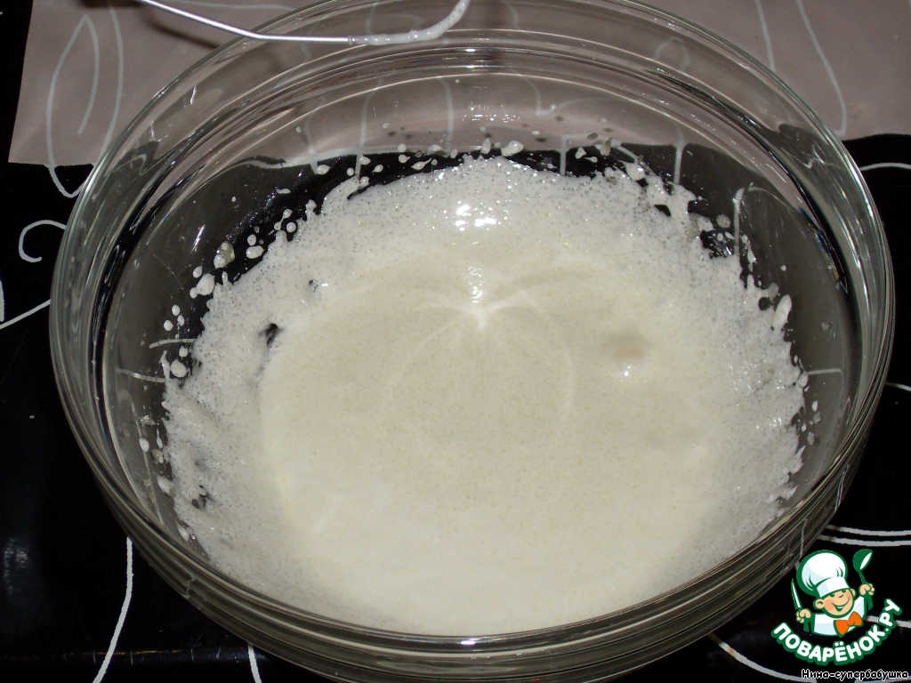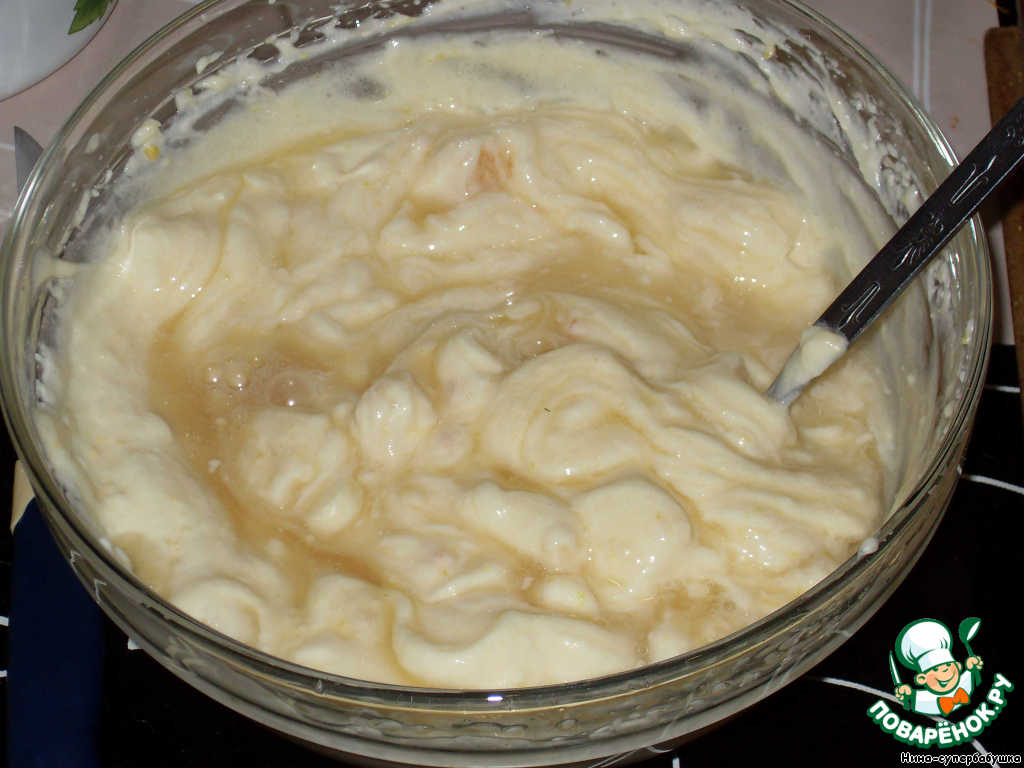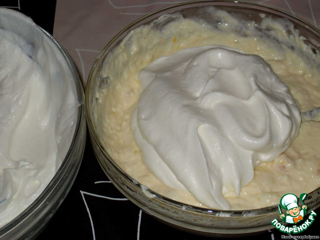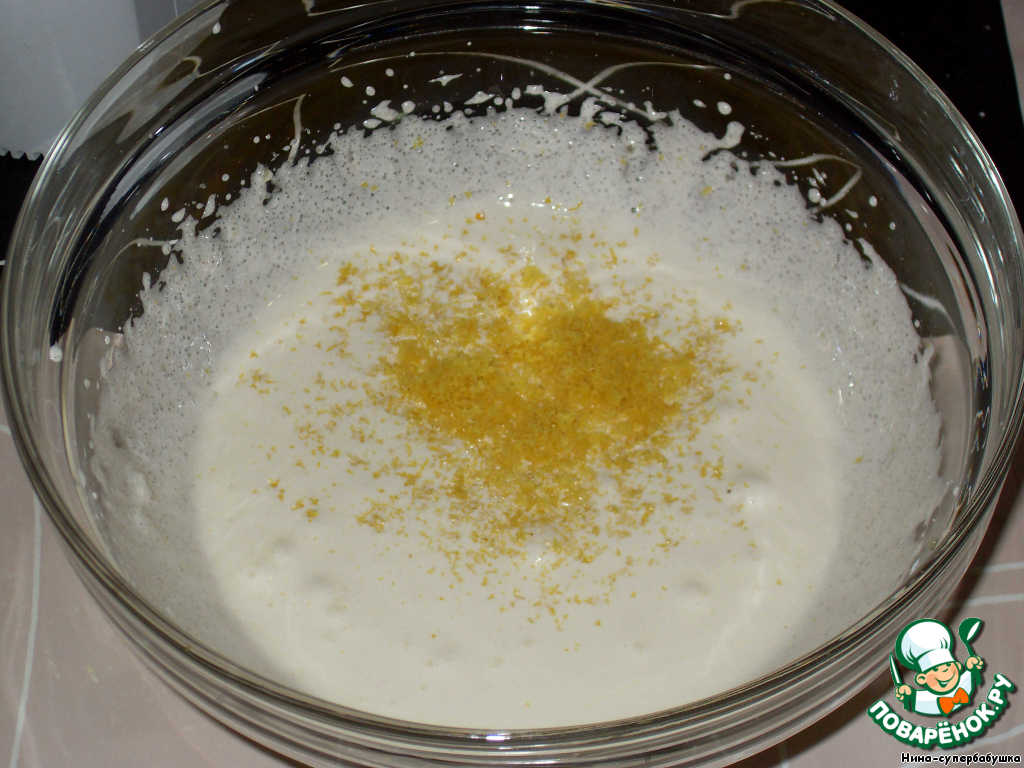 Желтки растереть с сахаром в пену, добавить цедру лимона, перемешать.