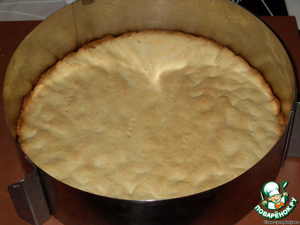 Корж положить на блюдо и окружить бортиком от разъемной формы (я использую раздвижное кольцо. Уникальная вещь, не могу нарадоваться, что купила).
