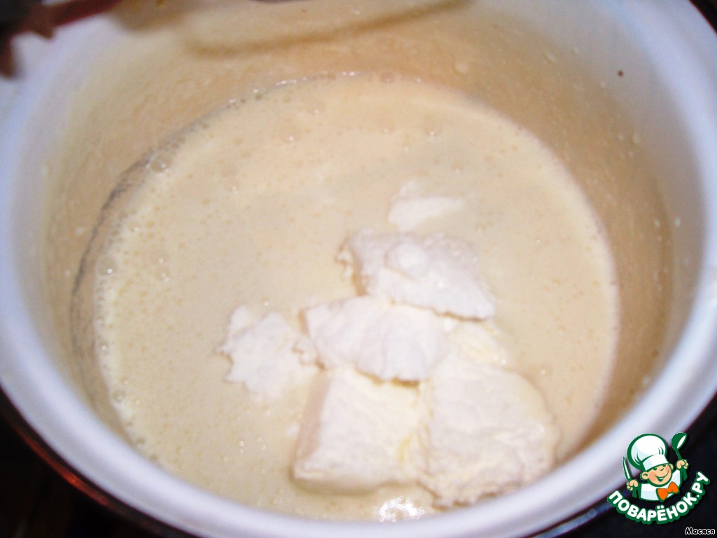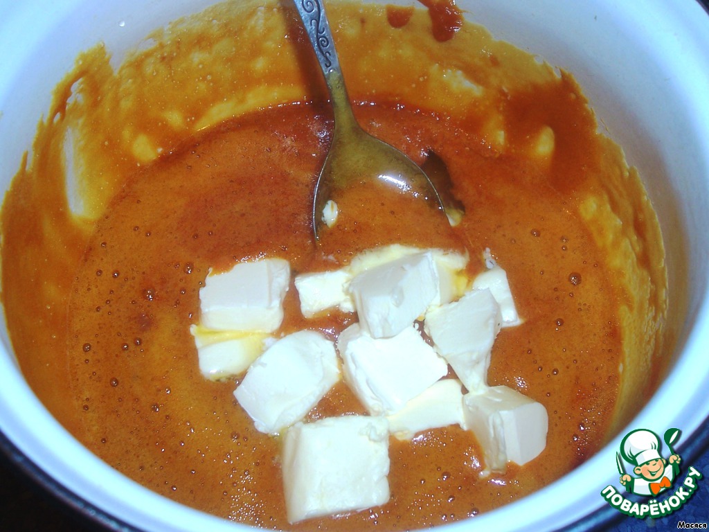 Итак, первым делом займемся очень интересным процессом - на небольшом огне растапливаем мед с содой до золотого цвета! Действие происходит буквально за секунды! Масса приобретает золотисто-рыжий цвет и увеличиается в объеме раза в два!