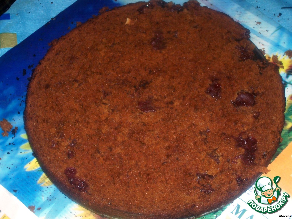 Затем в этой массе растворяем масло, сахар, добавляем яйца, вишню, специи и муку. Все хорошо взбиваем, переливаем в форму и отправляем в духовку на 30-40 минут.
