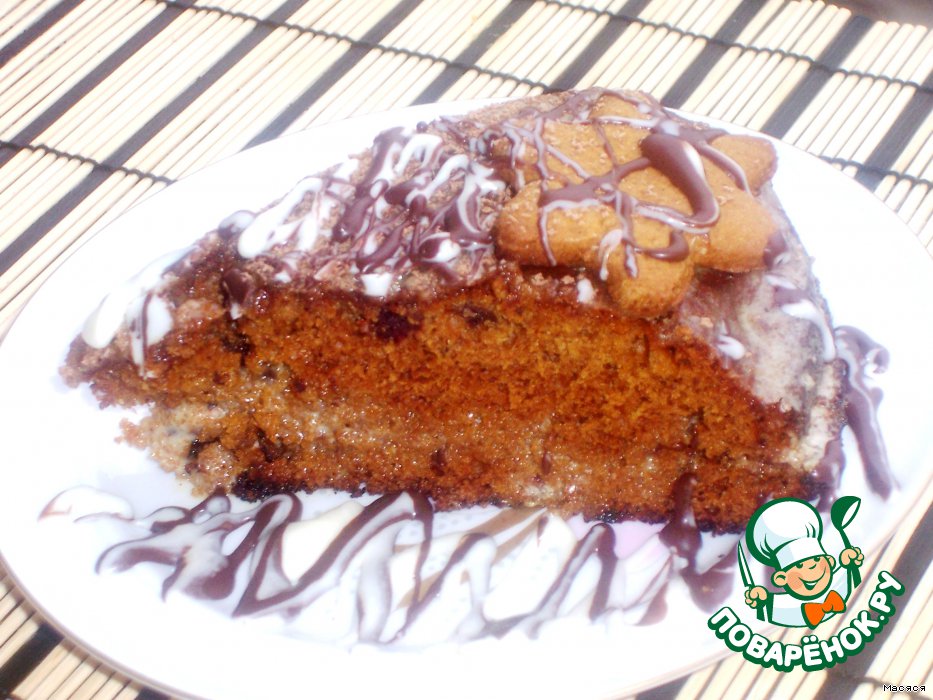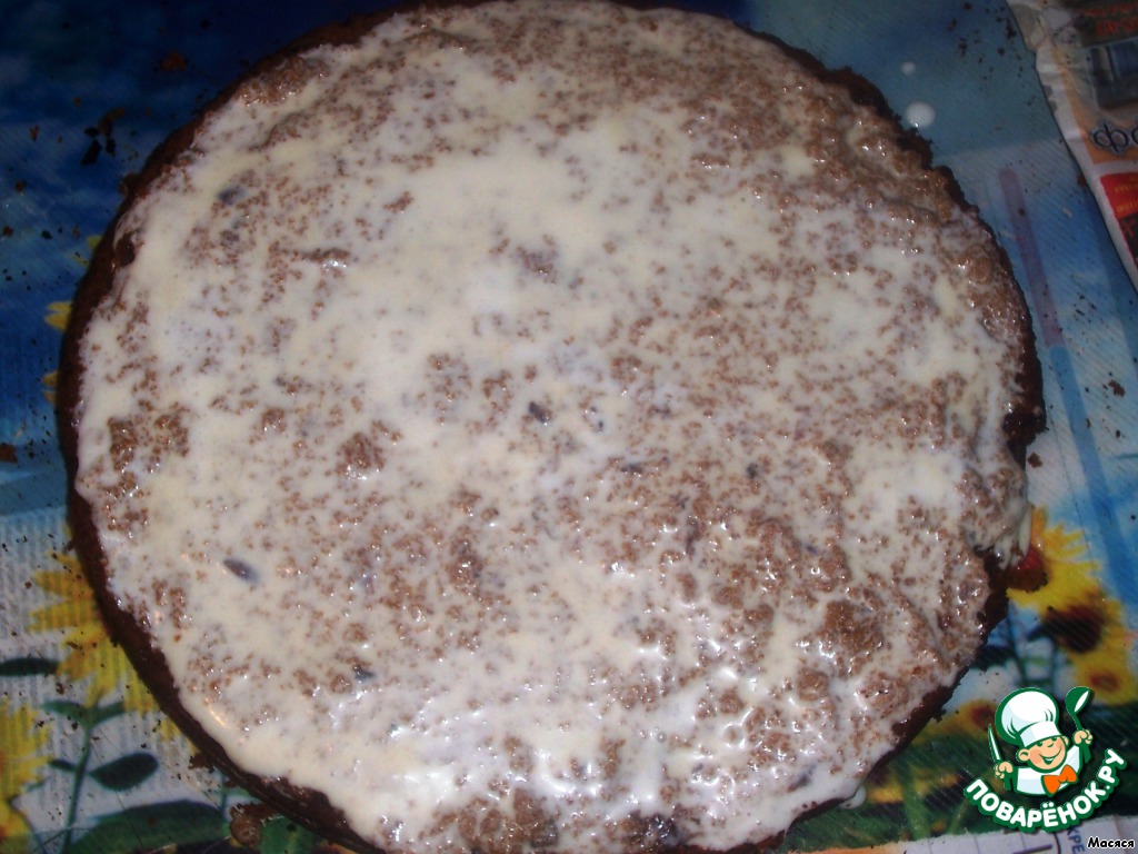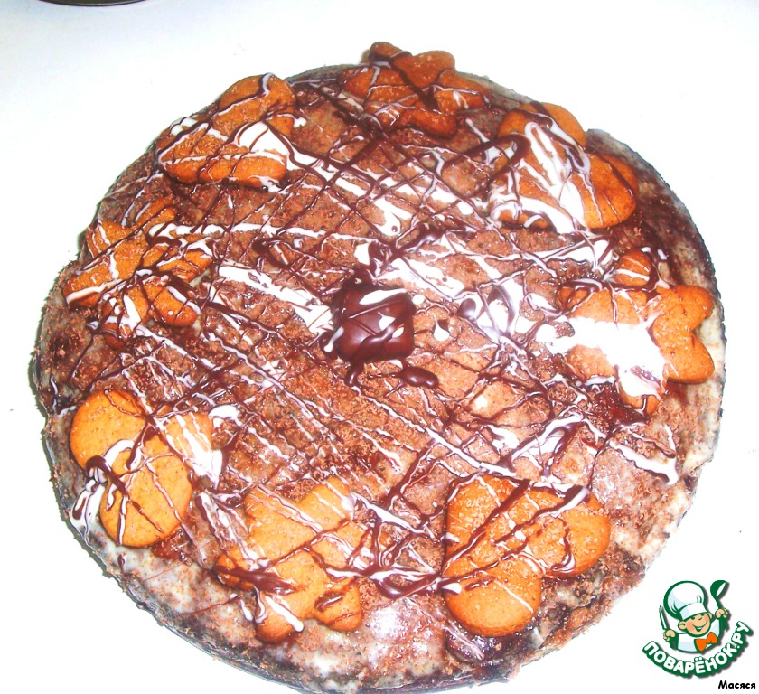Накрыть вторым коржом и украсить по своему желанию. Я использовала готовую глазурь "Доктор Оеткер" и имбирное печенье. Рецепт здесь http://www.povarenok.ru/recipes/show/49207/