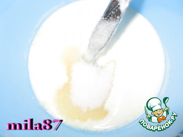Смешиваем оставшийся сахар со сметаной. Нужно пробовать, мне сахара было достаточно.
