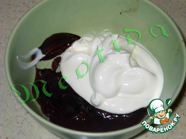 Шоколад нужно растопить. Можно в микроволновке (главное - не передержать!!), а проще на водяной бане. Смешиваем сметанку с шоколадом до однородного кремообразного состояния.