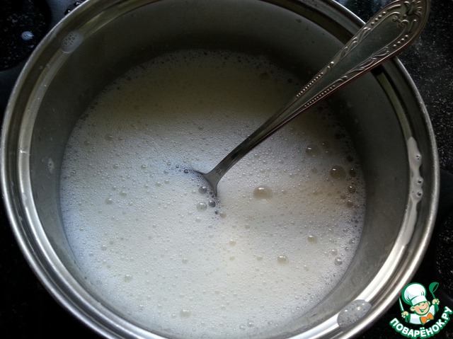 Молоко нагреть почти до кипения, растворить в нем желатин и процедить через ситечко, чтобы не было комочков. Остудить.