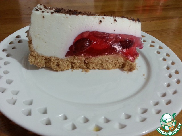 | Нежный, охлаждающий в летнюю пору тортик. К тому же очень красивый в разрезе. Готовила на День рождения мужа. Рецепт взят с сайта "Одноклассники". В оригинале у автора (к сожалению он не указан), торт с киви, но у нас в продаже нет желе зеленого цвета, да и не сезон киви. Поэтому у меня красный виноград. На сайте поискала, но ничего похожего не нашла. |