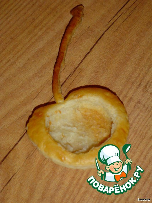 Выпекаем вишенки,смазав сверху яйцом.Из них сразу же удаляем середину.