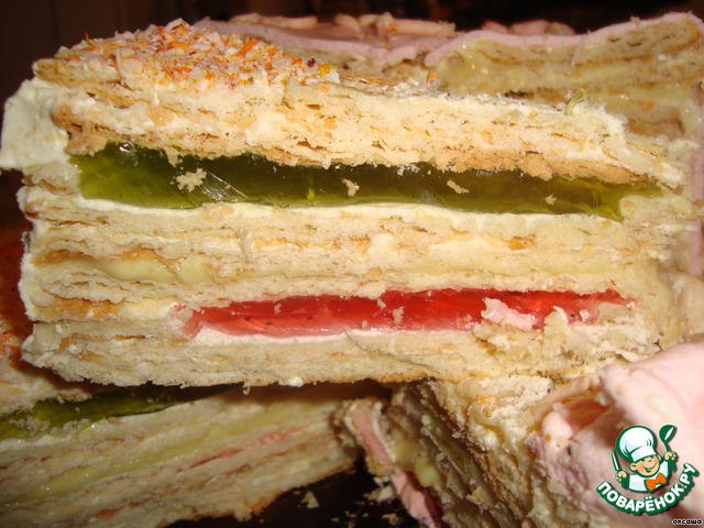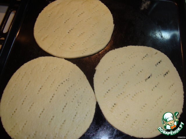 Тесто делала по этому рецептуhttp://www.povarenok.ru/recipes/show/32367/ Кто не любит ссылки: просеянную муку перетереть с маргарином. Добавить сметану. Дрожжи развести в теплом молоке, добавить сахар и дать минут десять постоять. Дрожжи начнут "играть". Вылить их в тесто. Перемешать и хорошо вымешать. Получается мягкое, эластичное тесто. Раскатать тонко,вырезать нужной формы,часто вилкой сделать дырочки и в разогретую духовку до 180*С. Таких коржей у меня 9шт