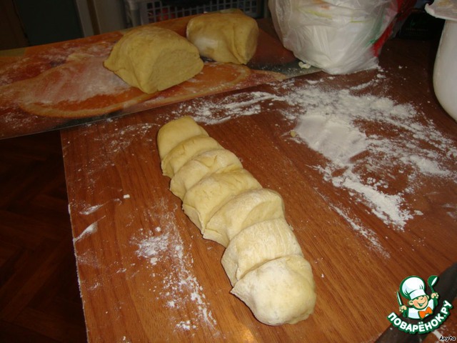 Тесто разделить на 21 часть. 9Я делила на 3, а каждую треть еще на 7)