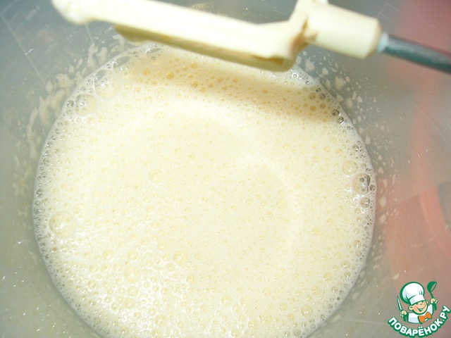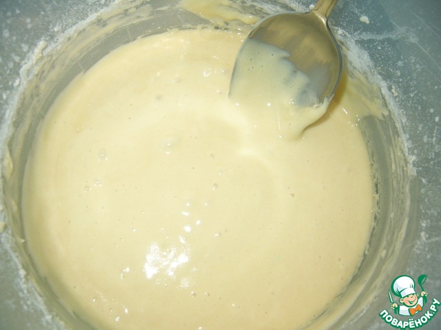 Миксером быстро, в течение 10-20 секунд, замесить тесто-оно будет как сметана