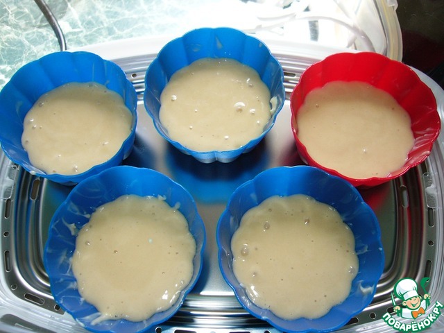 Силиконовые формочки (5 штук-диаметр 8 см, высота 4 см)смазать слив. маслом и поставить в пароварку