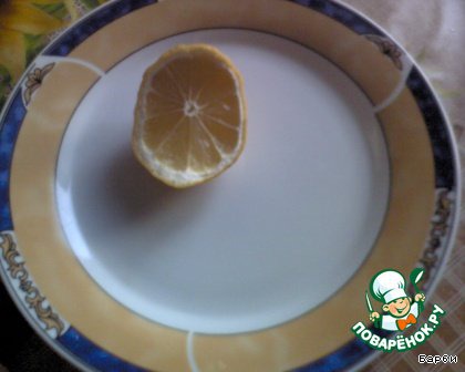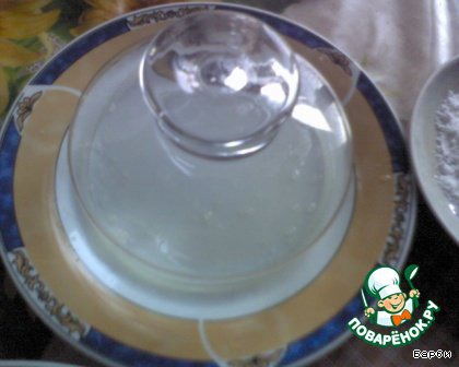 На другую тарелку насыпаем сахарную пудру и креманку, края которой в соке, помещаем в пудру.