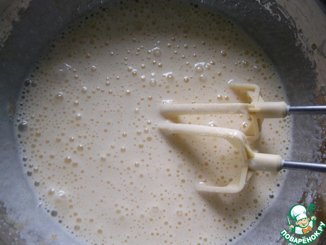 Яйца взбить с сахаром до побеления массы-1-2 минуты.