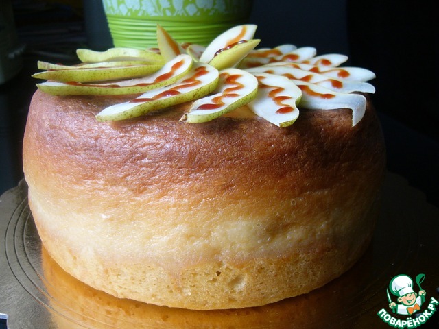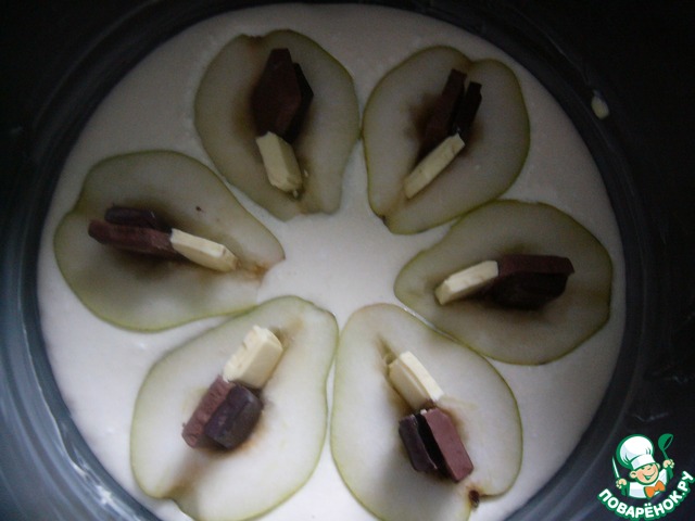 Рецепт "Бисквитно-творожный пирог с грушами и шоколадом (в мультиварке)":
