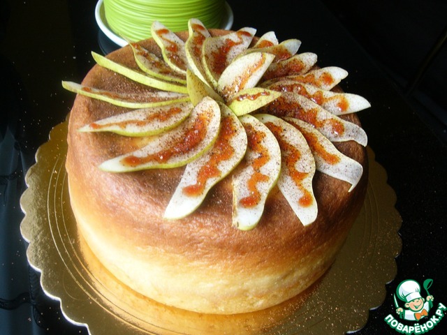 Бисквитно-творожный пирог с грушами и шоколадом (в мультиварке)