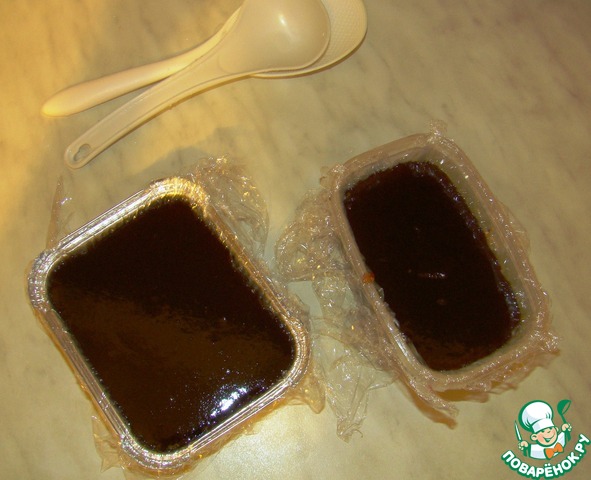 В формочки, застеленные пищевой пленкой, распределяем наше пюре и оставляем до полного остывания. Затем убираем в холодильник до застывания.