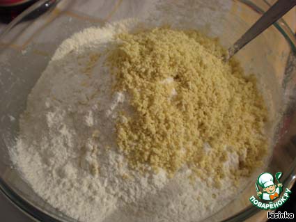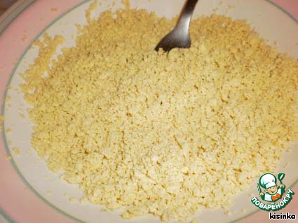 Добавляем к полученной смеси муку и предварительно перетертые яичные желтки
