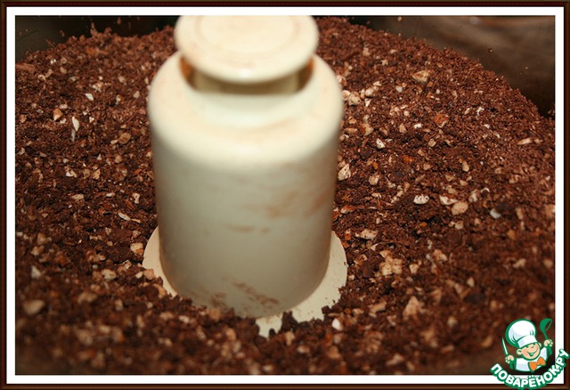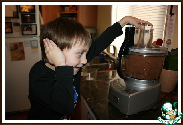6. Включите опять кухонный комбайн и добавьте к смеси воду. Вот такая у вас масса получится.