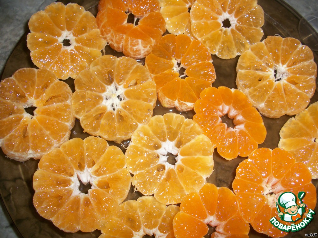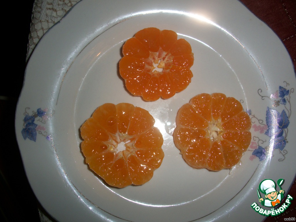 Обмакнуть каждый кружок мандарина в карамели и выложить на тарелку.