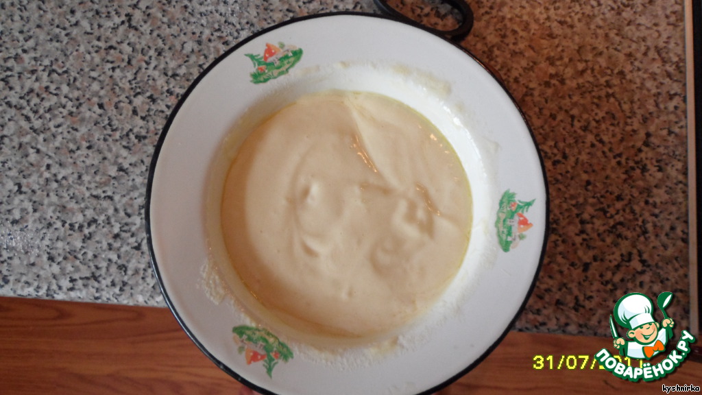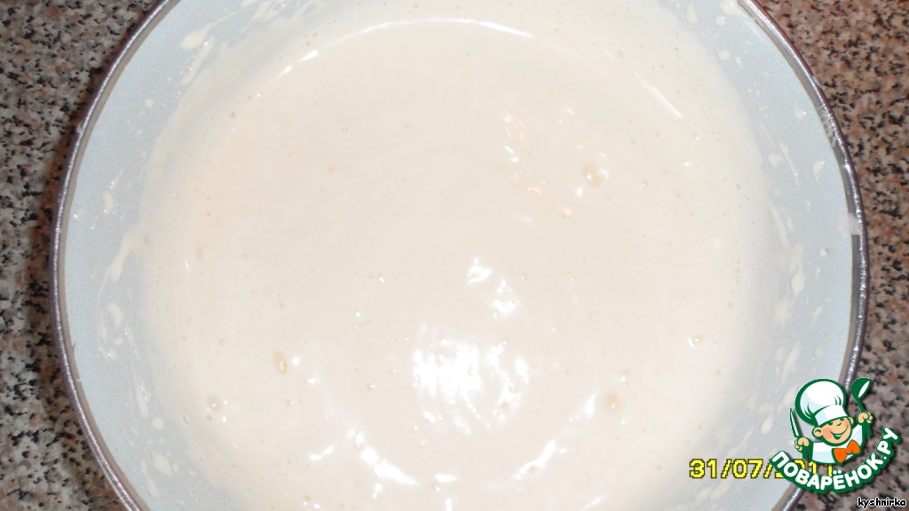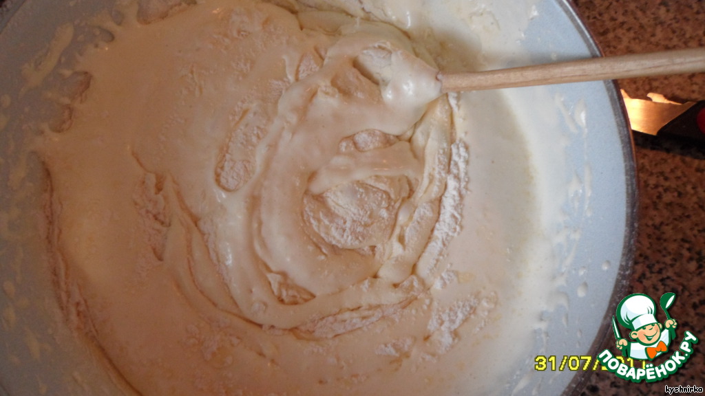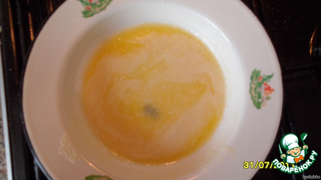 Отложить несколько ложек теста в посуду с растопленным сливочным маслом