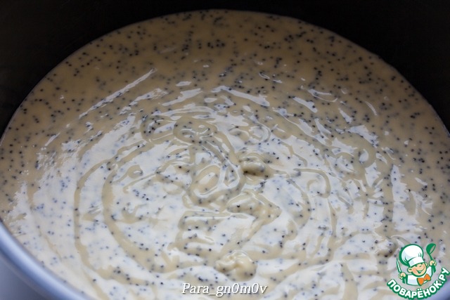 2. В полученную смесь добавить муку, мак, ванильный сахар, соль, разрыхлитель и снова взбить до однородности. Чашу мультиварки немного смазать сливочным маслом и выложить в нее тесто.