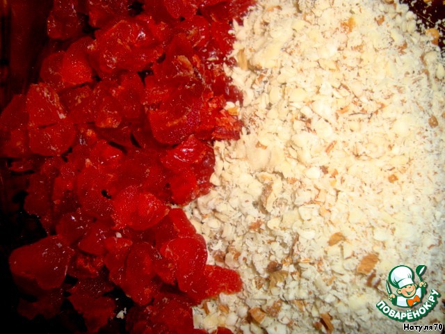 Вишню нарезать маленькими кусочками. Миндаль слегка обжарить и измельчить.