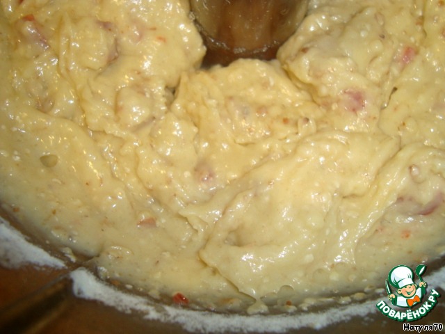 Добавляя по ложке мучной смеси к яичной, замешиваем тесто.