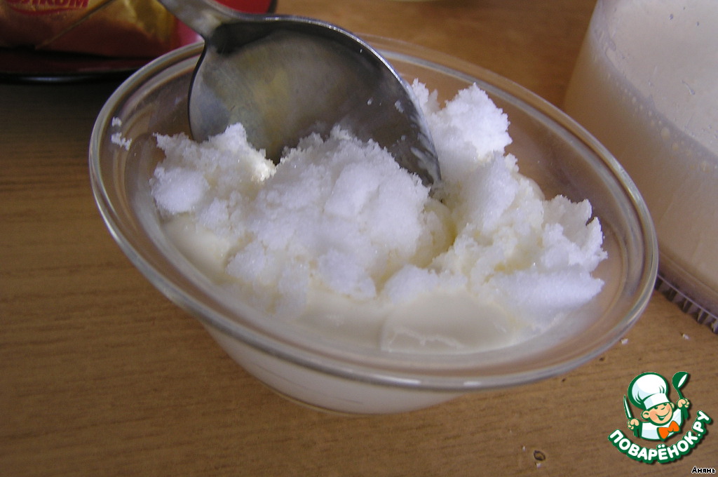 Яйца взбить с сахаром до образования пены, добавить ванилин. Смешать сметану с аммонием.